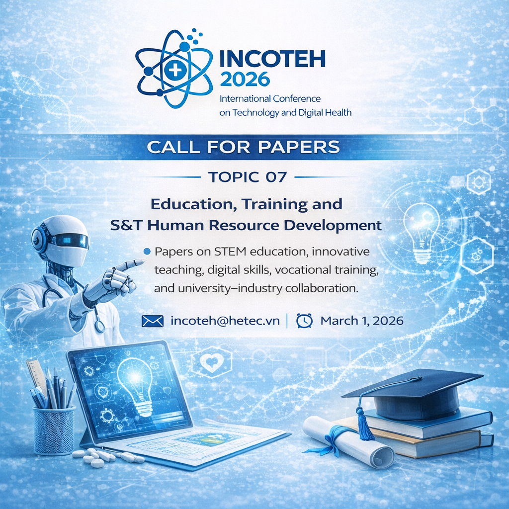 Ban Tổ chức trân trọng kính mời các nhà khoa học, giảng viên, chuyên gia giáo dục và cán bộ quản lý quan tâm gửi bài báo khoa học tham gia Chủ đề 7 – Giáo dục, đào tạo và phát triển nhân lực khoa học và công nghệ, góp phần lan tỏa tri thức, đổi mới giáo dục và phát triển nguồn nhân lực chất lượng cao phục vụ sự nghiệp phát triển bền vững.